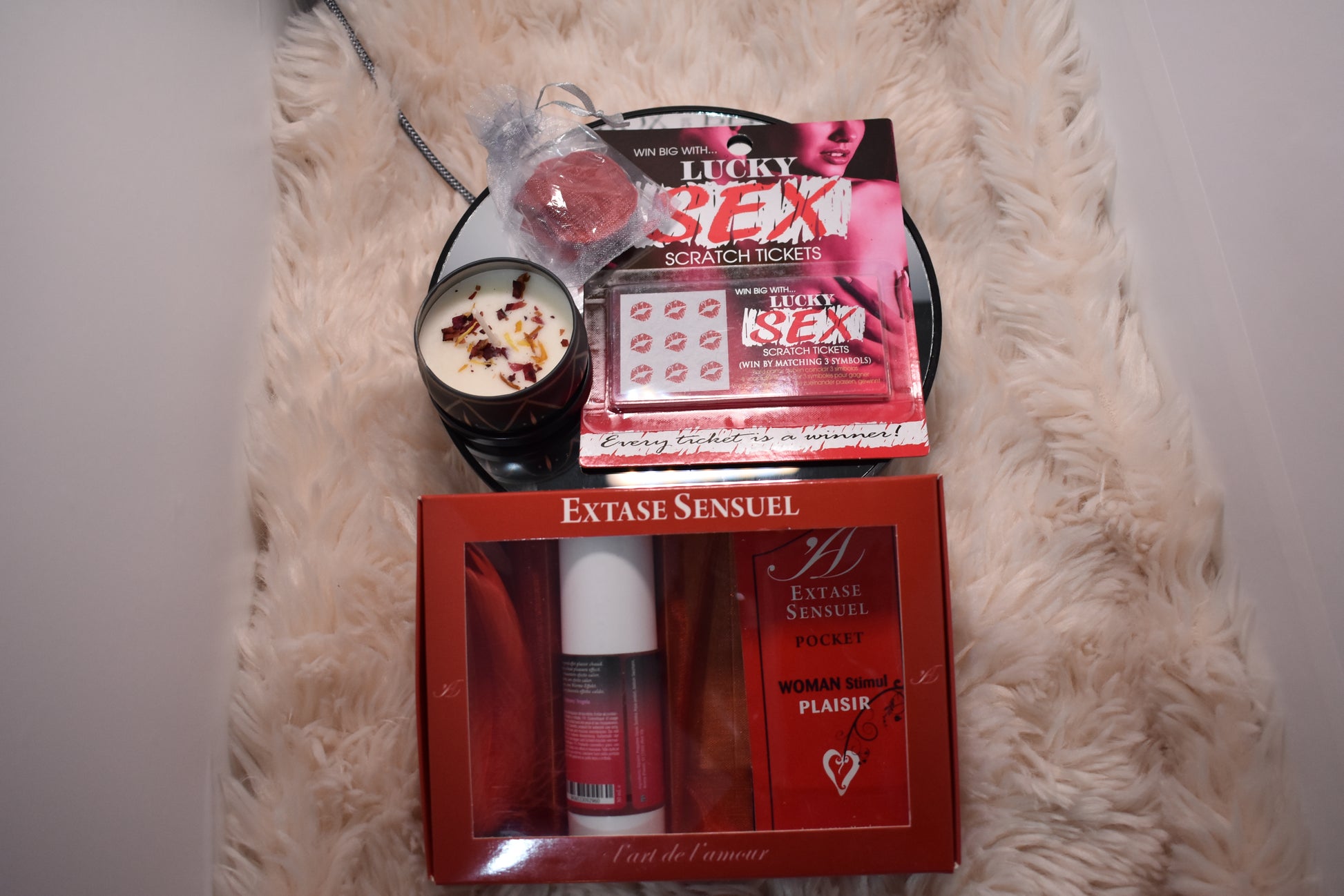 Contenu Premium : Inclut le kit "Extase Sensuel", une bougie artisanale aux pétales de fleurs et les célèbres tickets de jeu "Lucky Sex".